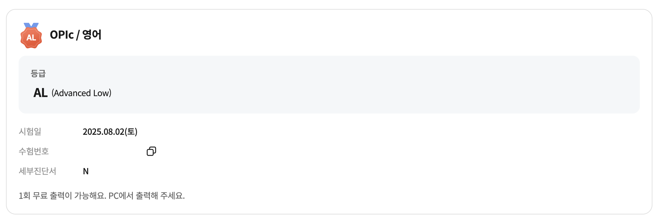 다들 아실지 모르겠지만 오픽은 미국 외국어교육위원회(ACTFL)에서 개발한 다국어 언어 말하기 어학시험으로, 같은 언어라면 마지막으로 시험을 본 날짜로부터 25일 경과 후